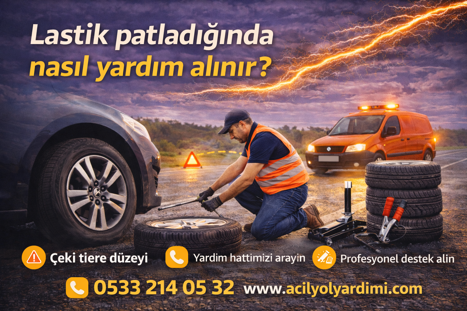 Seyir halindeyken yaşanan lastik patlaması, sürücüler için ani ve stresli bir durumdur. Direksiyon hâkimiyetinin azalması ve aracın dengesinin bozulması, doğru adımların önemini artırır. Bu noktada sürücülerin en çok sorduğu soru şudur: “Lastik patladığında nasıl yardım alınır?” Bu rehberde, lastik patladığında güvenli adımları ve profesyonel yol yardım desteğine nasıl hızlı ulaşacağınızı anlatıyoruz.